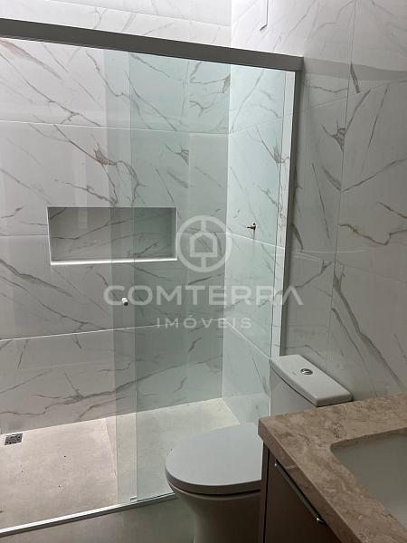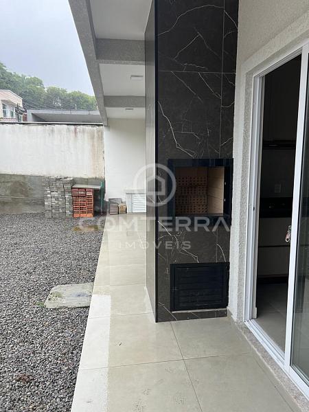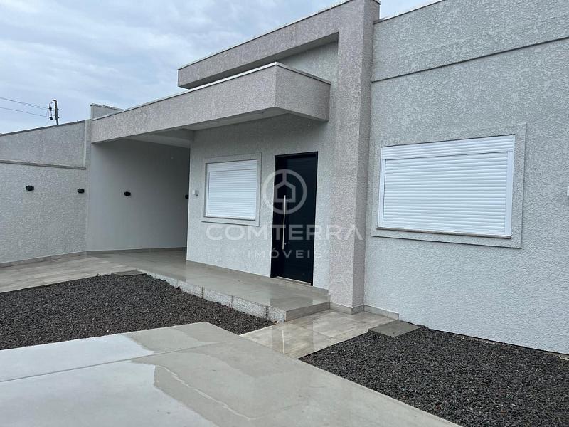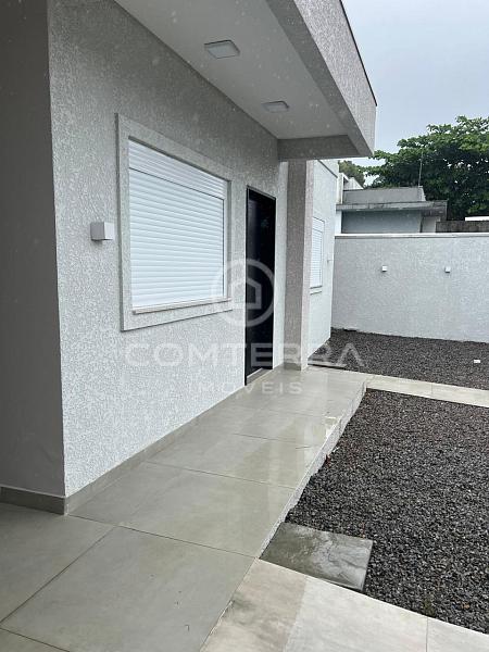 Casa nova zerada com ótimo acabamento no bairro vila Nova em Porto Belo. 01 suíte com ar, 02 quartos com ar, banheiro social com box e movel planejado, cozinha com móveis planejados, ampla sala com painel de parede, garagem, banheiro externo, churrasqueira, energia solar instalada. Casa regularizada apta a financiamento bancário.
