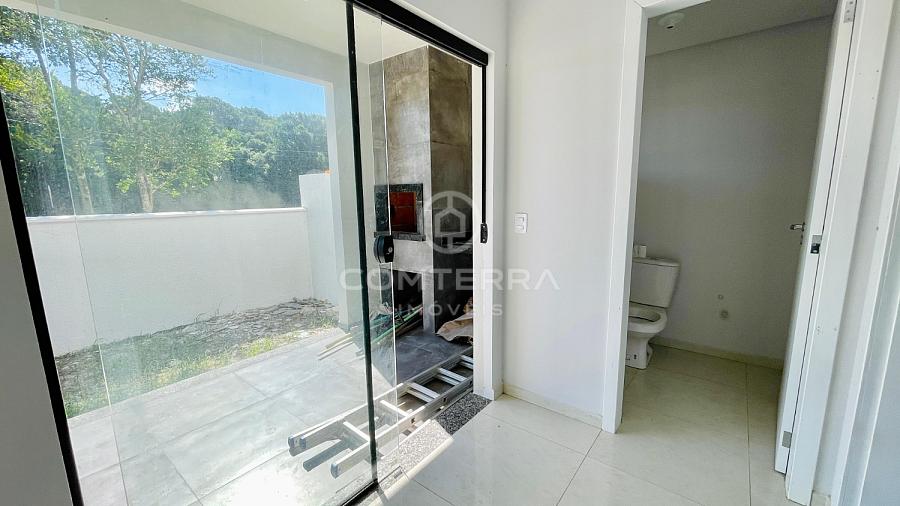 Churrasqueira, área de serviço, cozinha, sala, banheiro social;
